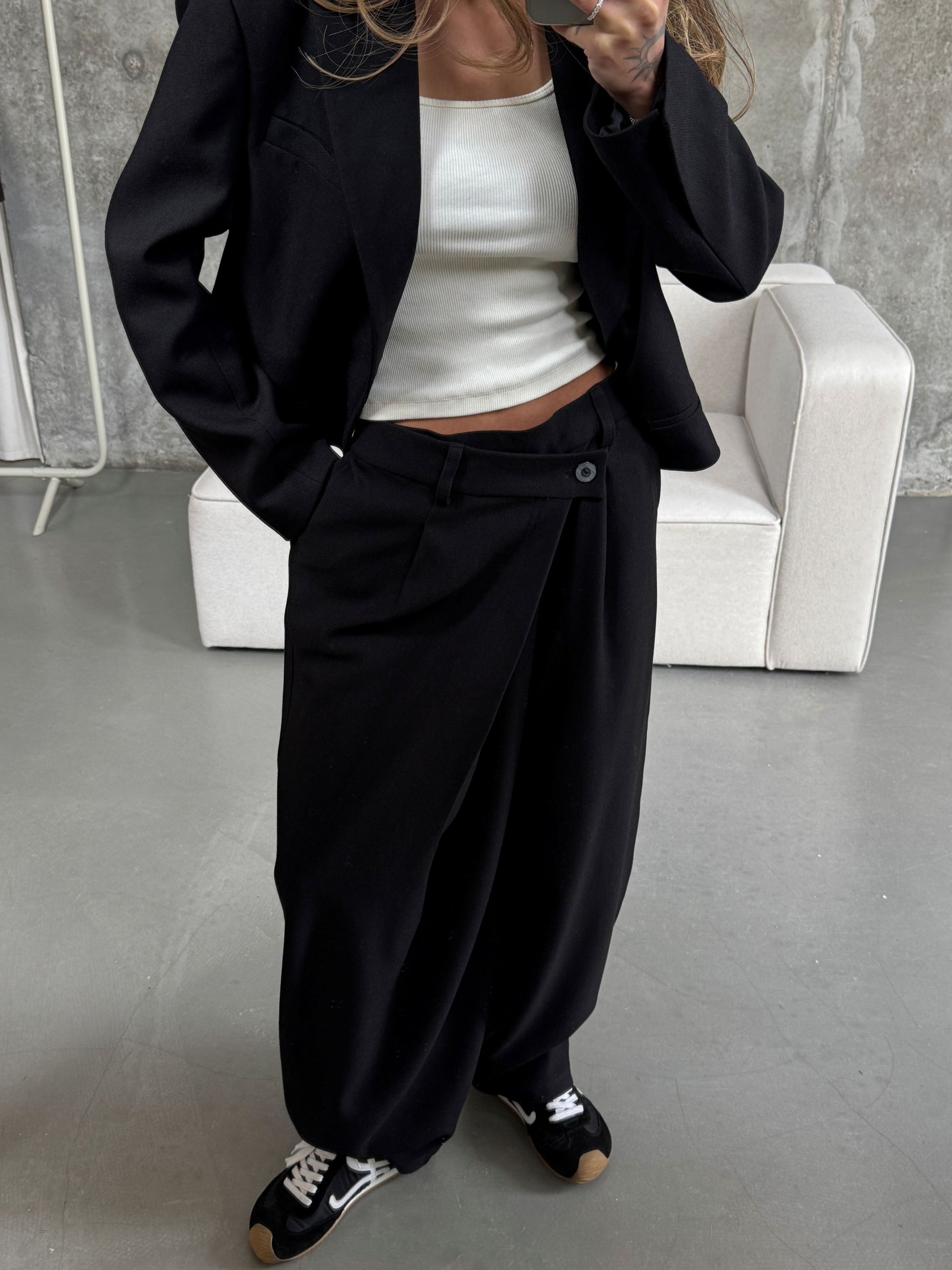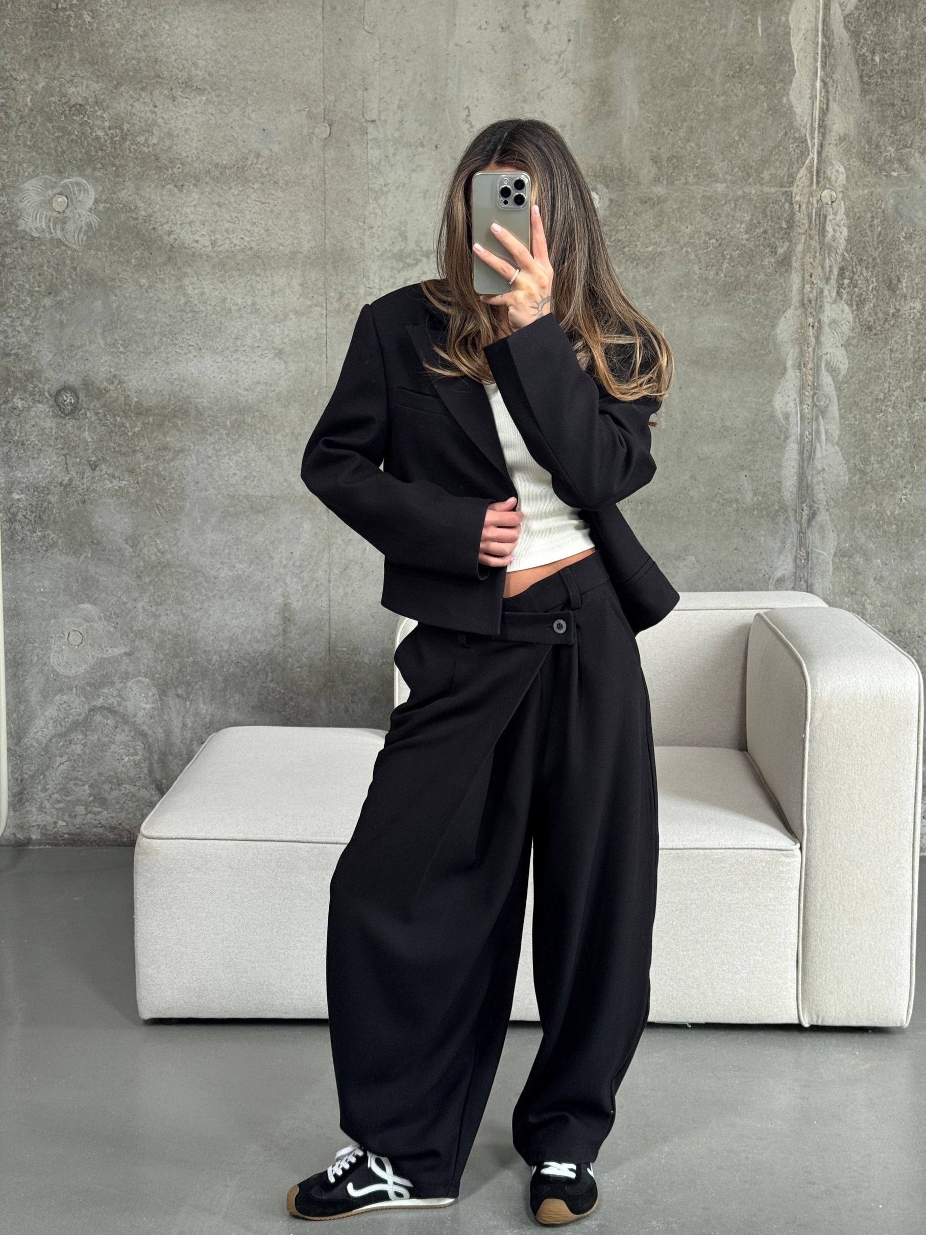 Ми все продумали за вас, аби не виникало питань, з чим носити наші нові палаццо :) Класним доповненням стане вкорочений жакет вільного крою, виконаний з такої ж тканини, як і брюки. Під низ можна одягти лонг чи футболку, зверху - пальто, доповнити все аксесуарами - і образ готовий.