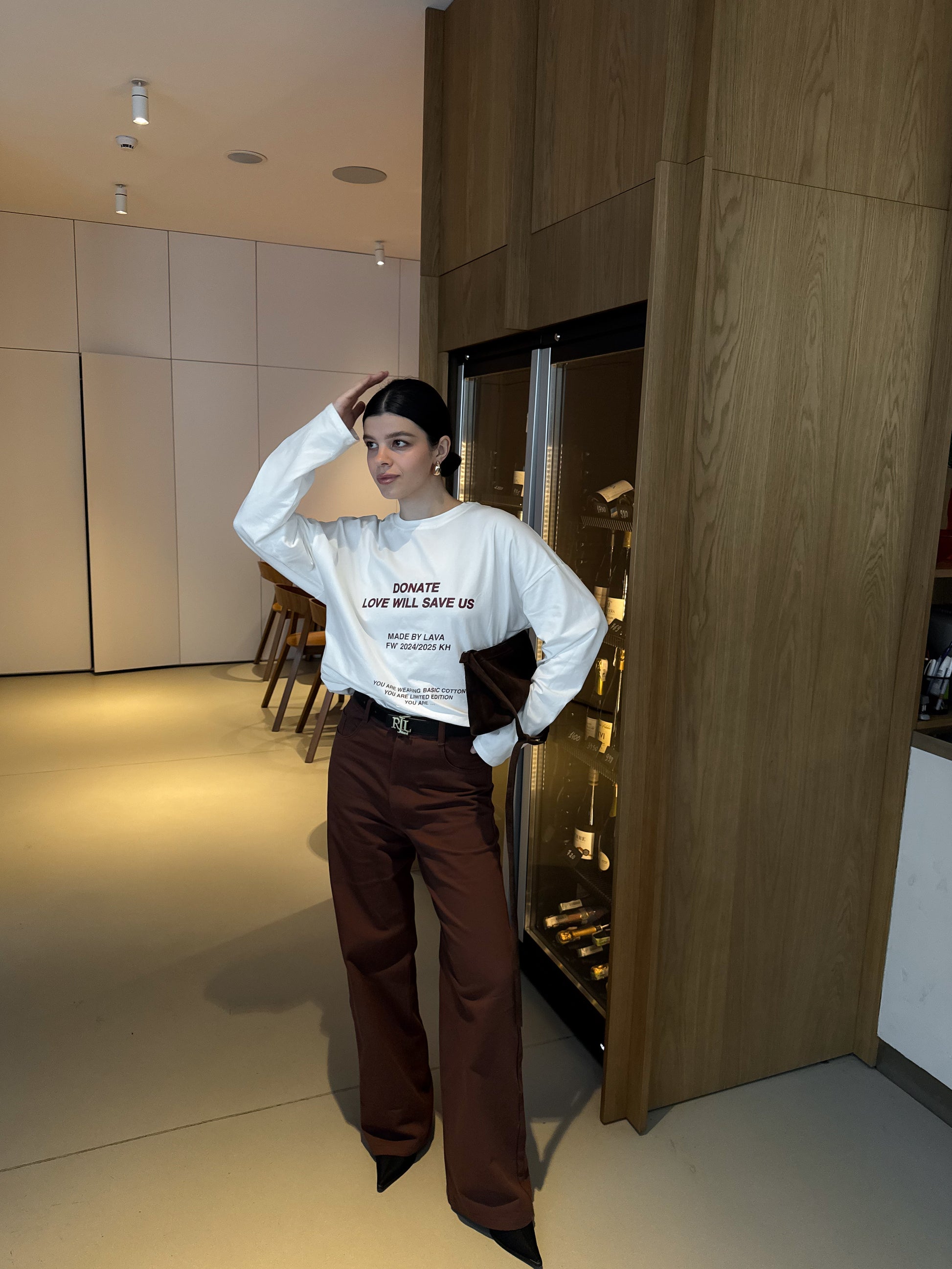 Оверсайз лонгслів, виконаний з 100% котону, представлений в єдиному універсальному розмірі. Незамінна базова річ у гардеробі кожної.
