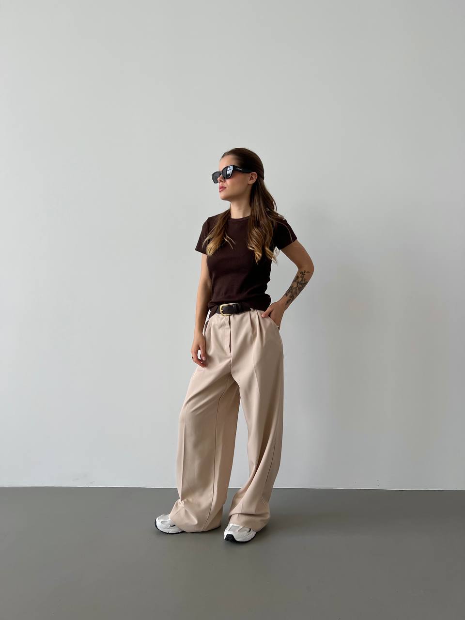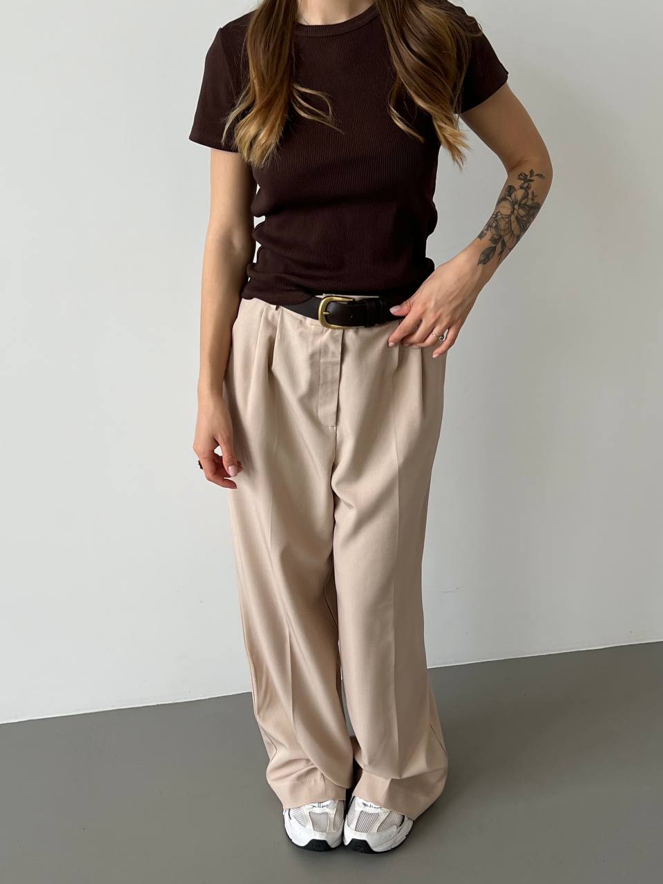 Палаццо - це бестселер бренду, універсальна річ, яка доповнить будь-який образ. Склад тканини – костюмна тканина тіар (80% acrylic, 20% cotton), тримає форму, щільна, якісна . Класичні відтінки, які гармонійно поєднуються з будь-якими речами. Мають шлейки для ременю.
