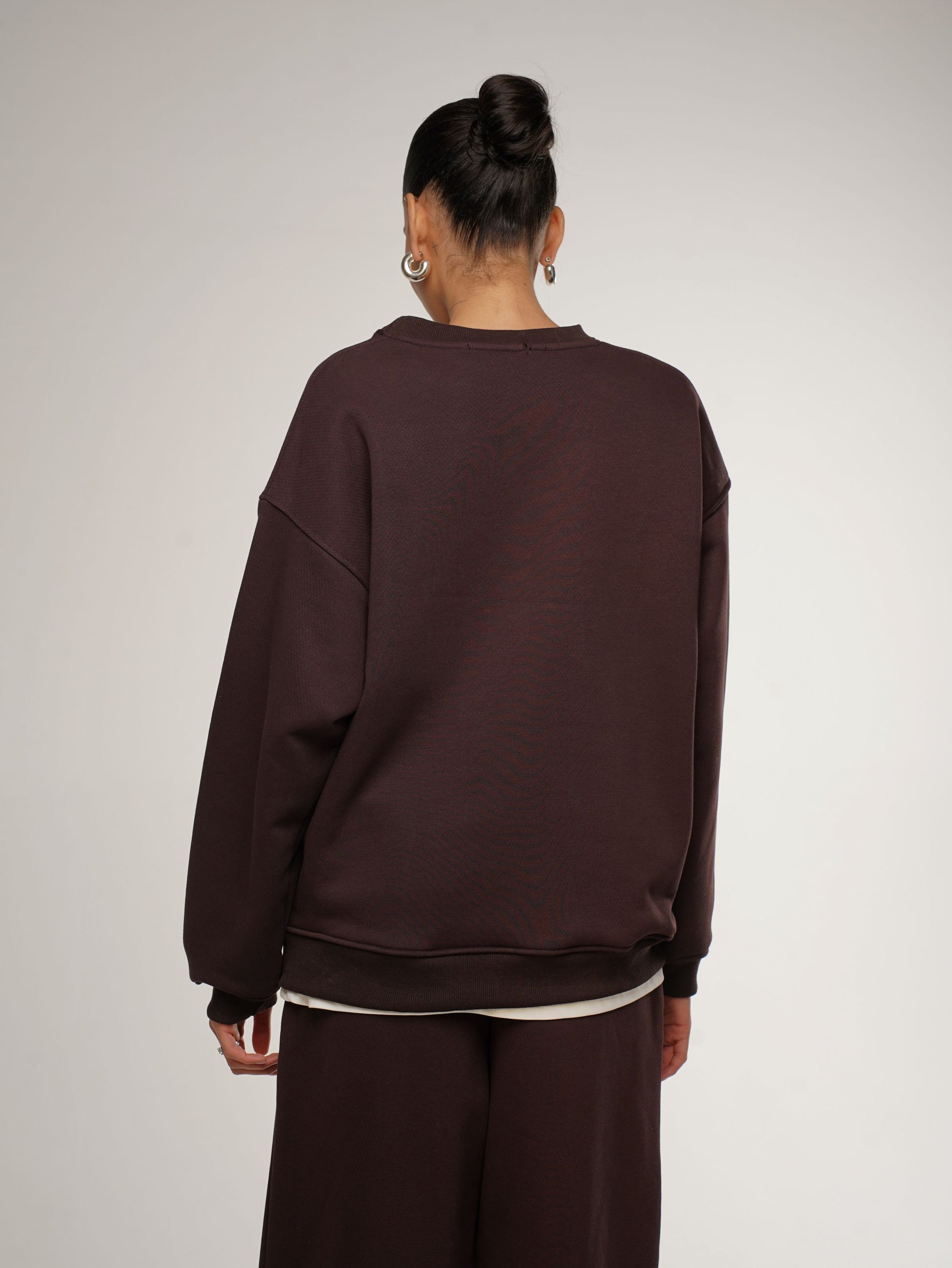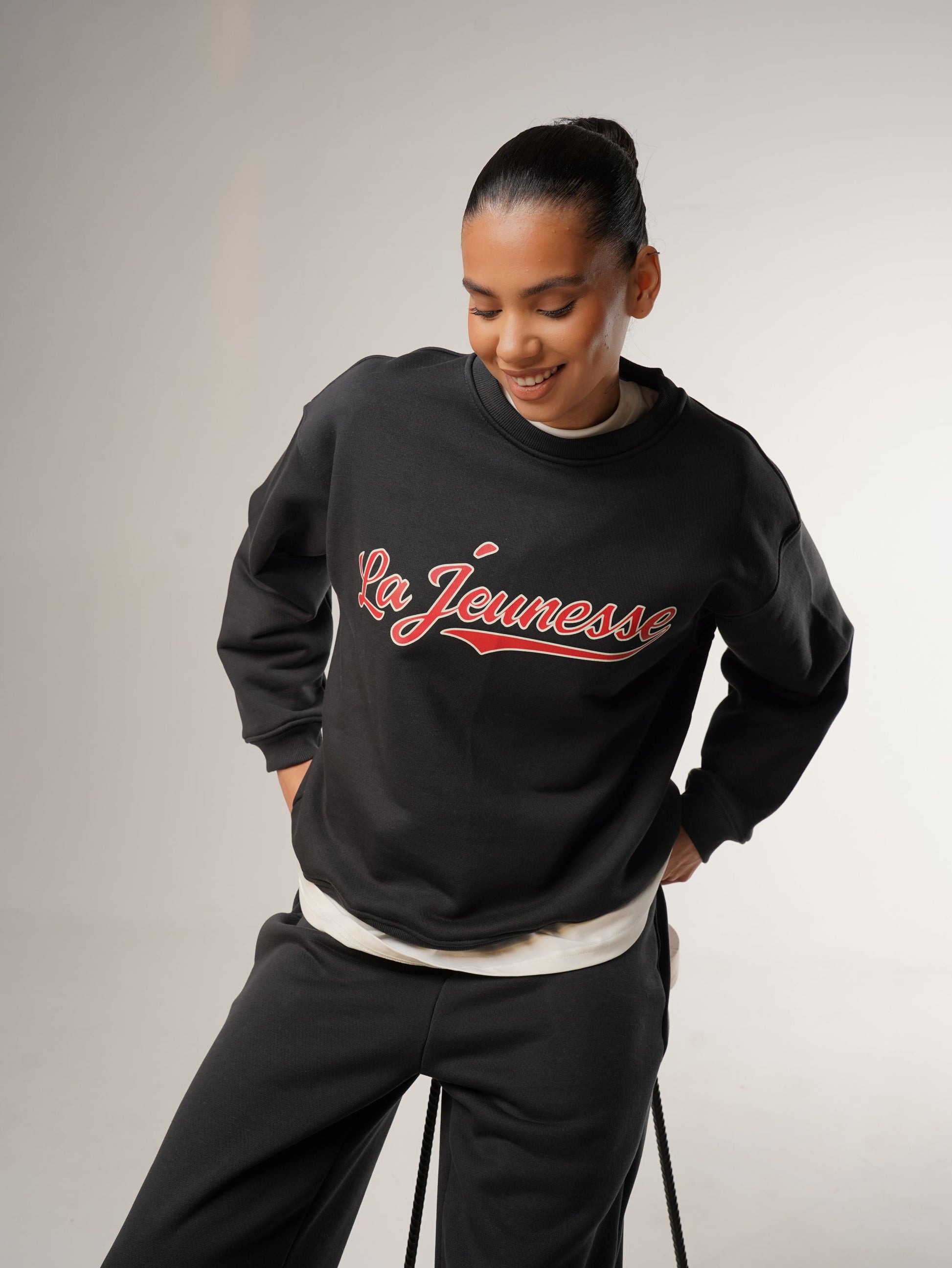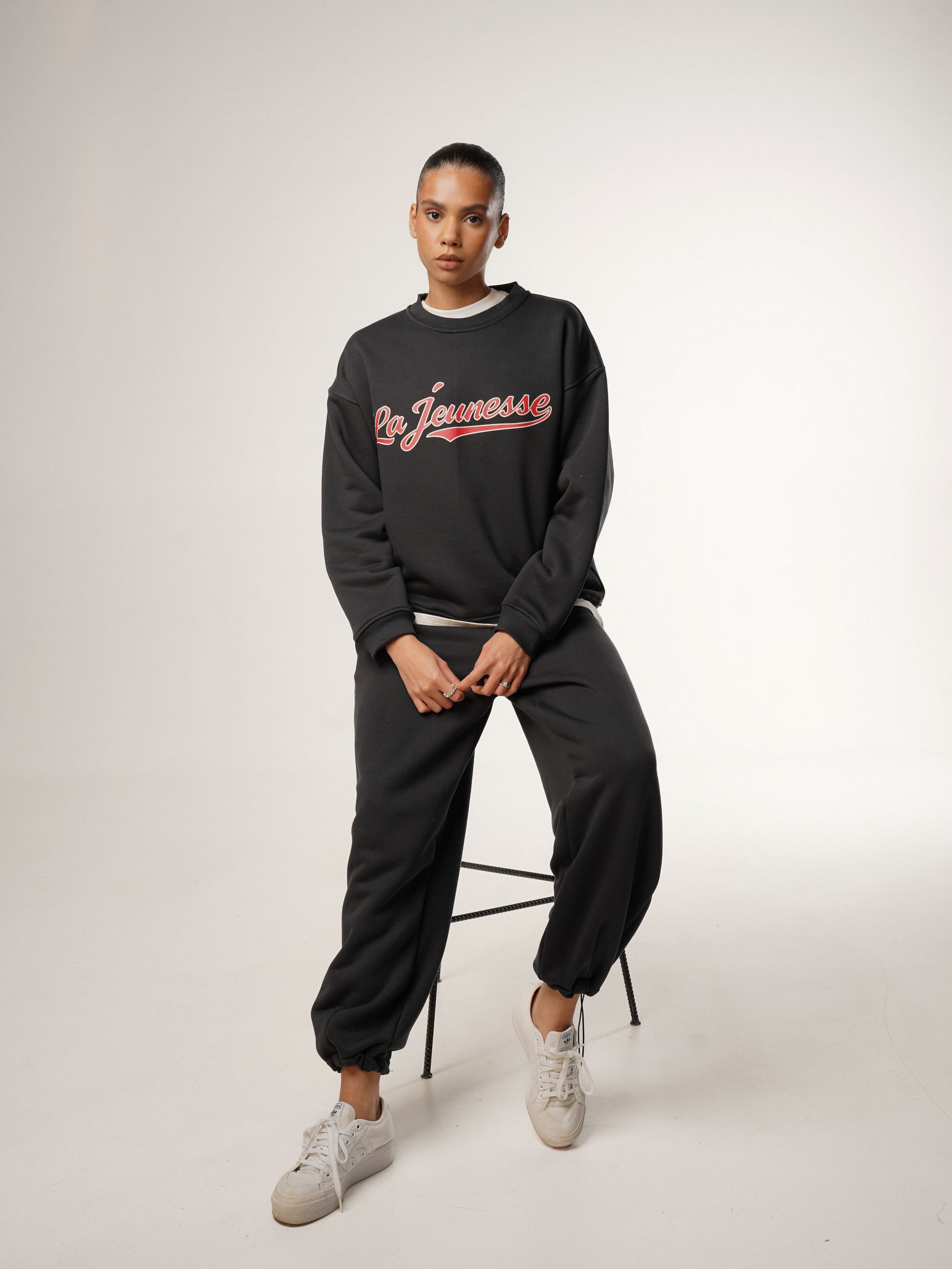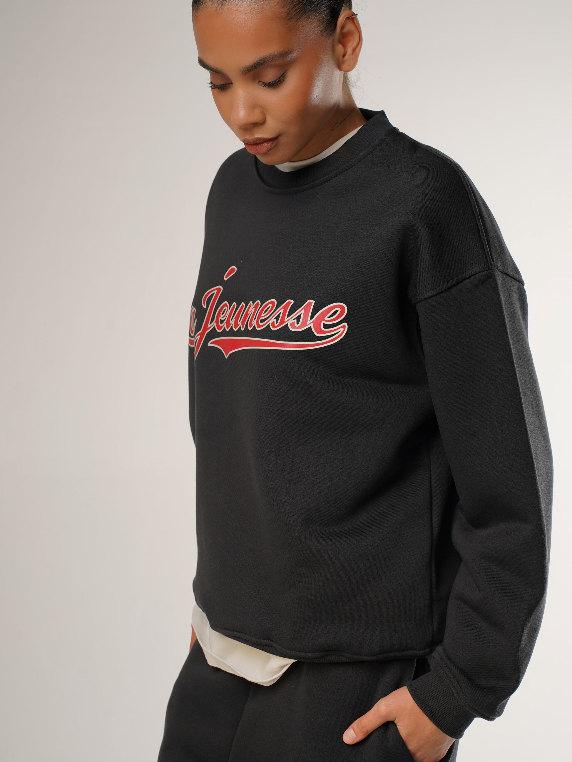 Світшот із принтом «La Jeunesse» (в перекладі з французької «молодість») у коричневому та графітовому кольорах створений для тих, хто цінує комфорт і мінімалістичний стиль. Вільний крій, спущена лінія плеча та щільна тканина роблять його незамінним на кожен день.