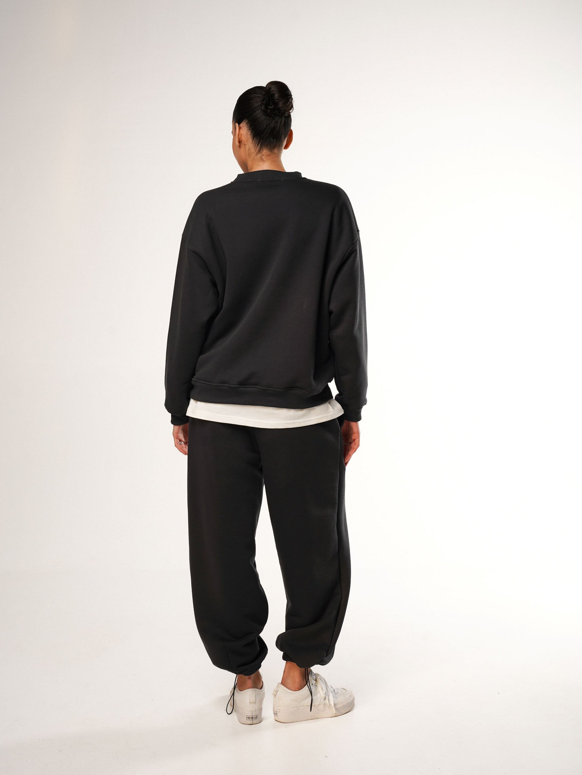 Світшот ідеально поєднується у комплекті з джогерами, створюючи стильний костюм на всі випадки. Також легко комбінується й окремо: з денімом, штанами вільного крою чи навіть шортами у міжсезоння. Аксесуар у вигляді шарфа або обʼємної сумки завершить образ.