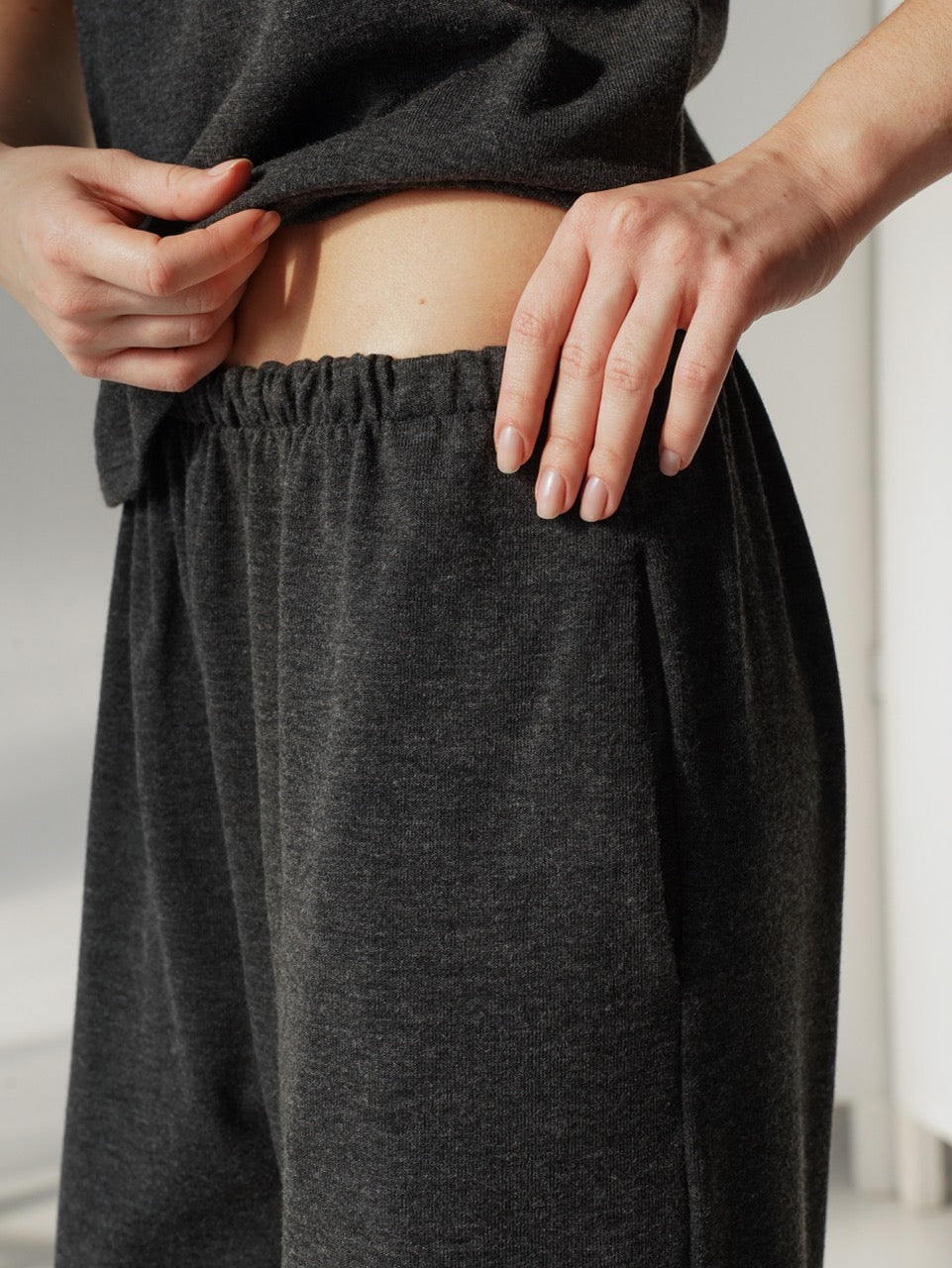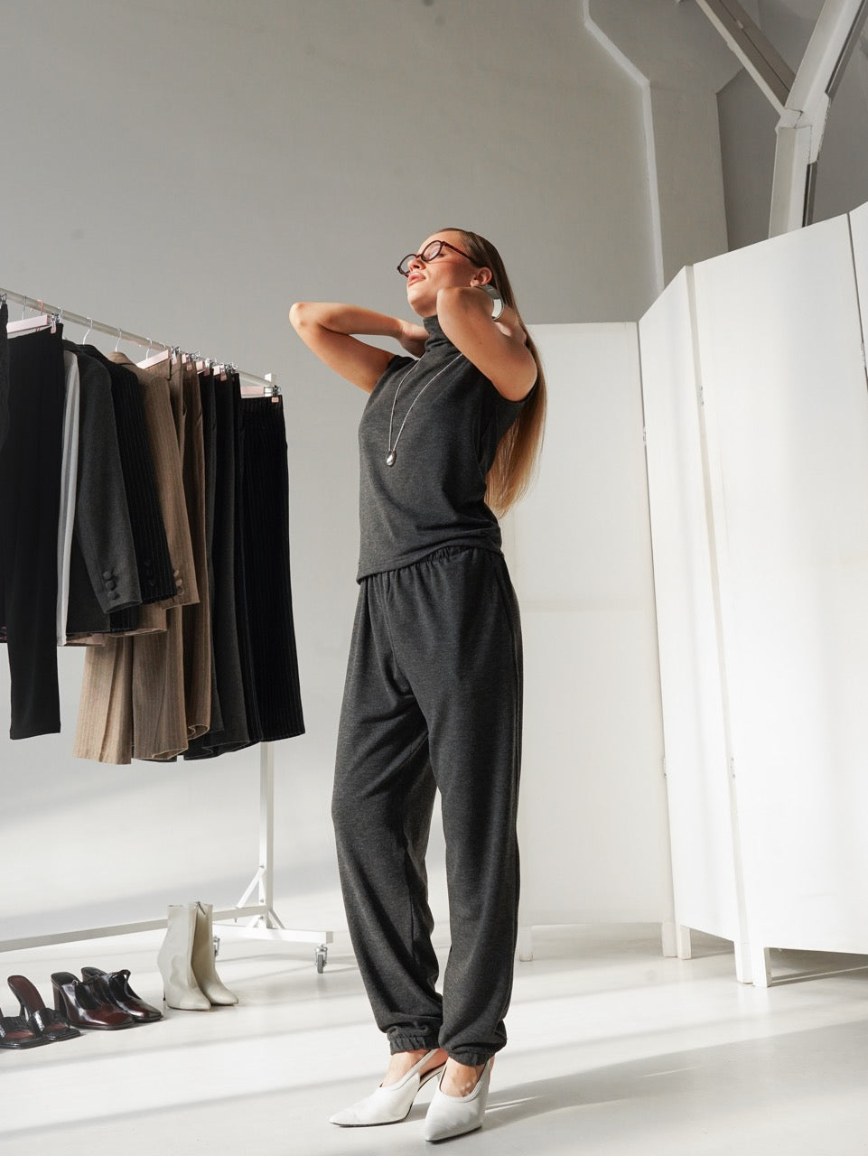 Трикотажні джогери на всі випадки життя. Восени їх можна носити з ботильйонами на маленьких підборах, а взимку — з укороченими уггами. Класний варіант у чорному та сірому кольорі! Довго не думайте — кількість тканини обмежена 😎