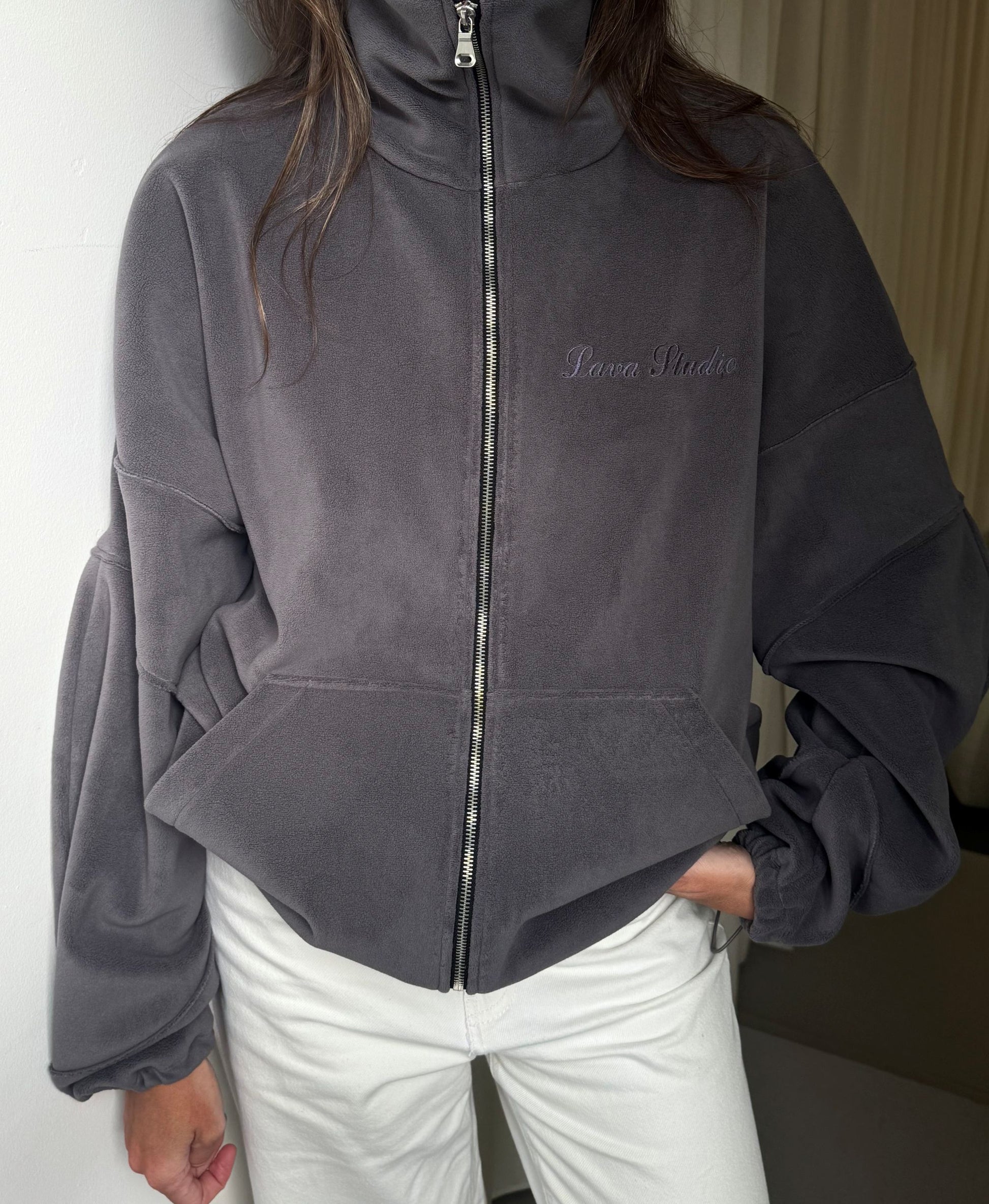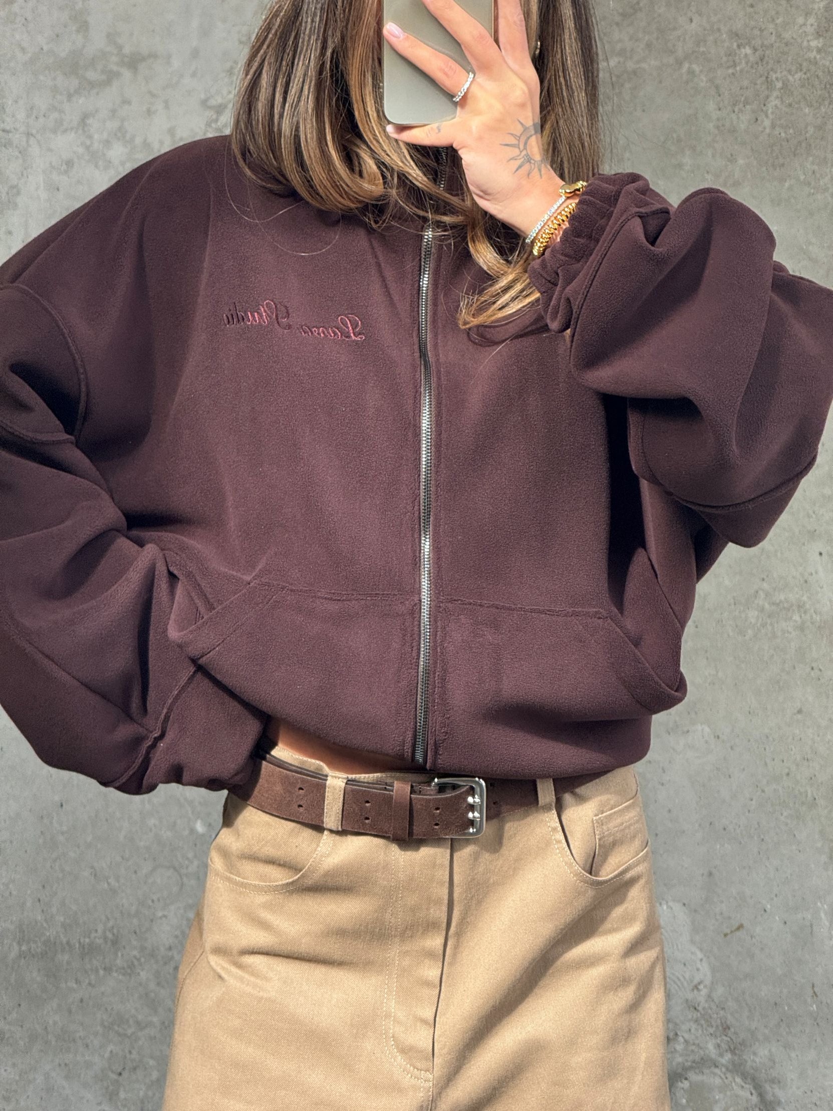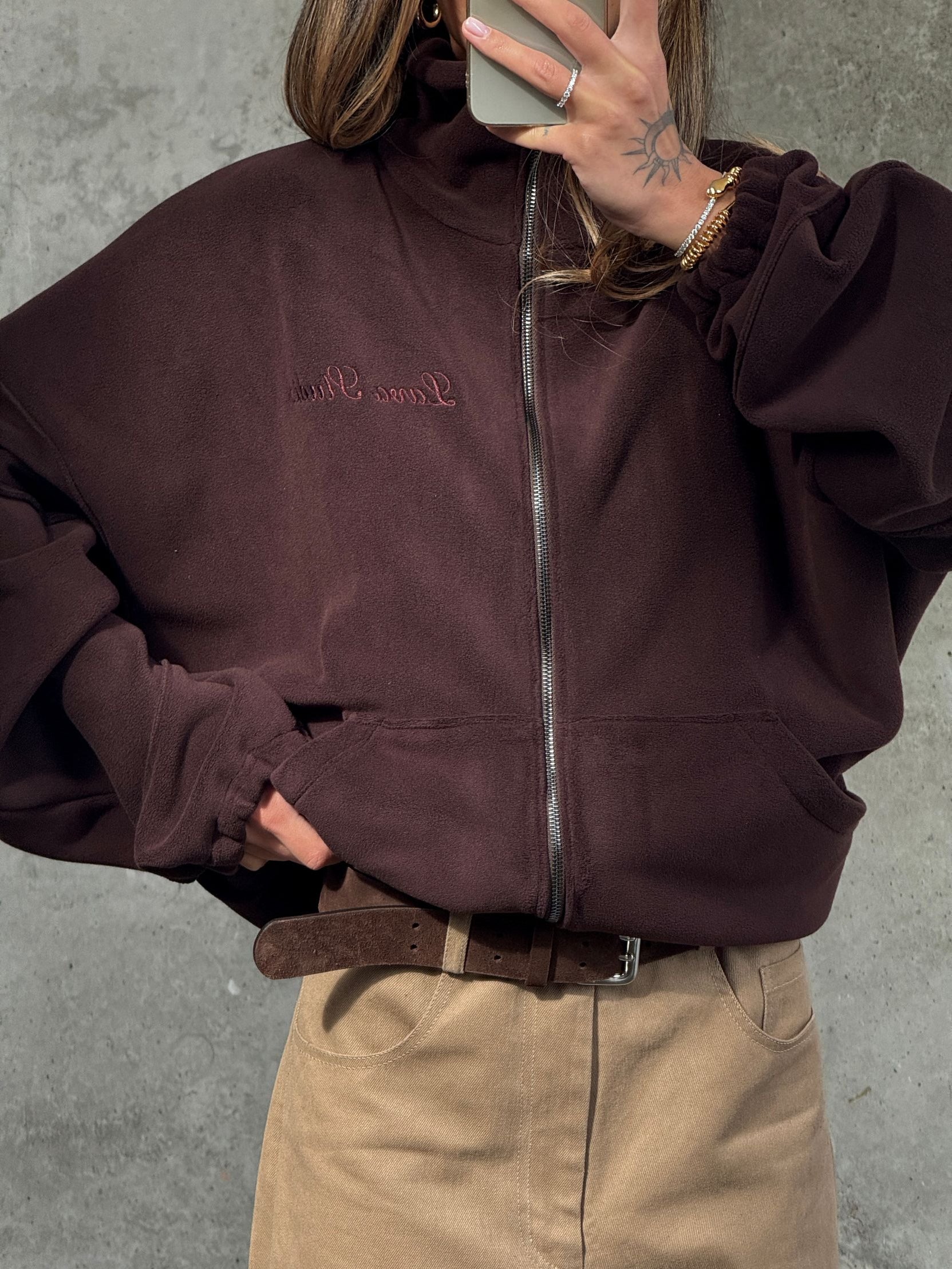Дизайн фліски доповнений фірмовою вишивкою з лого бренду та декоративними накладними швами на рукавах, що додає виробу впізнаваного стилю