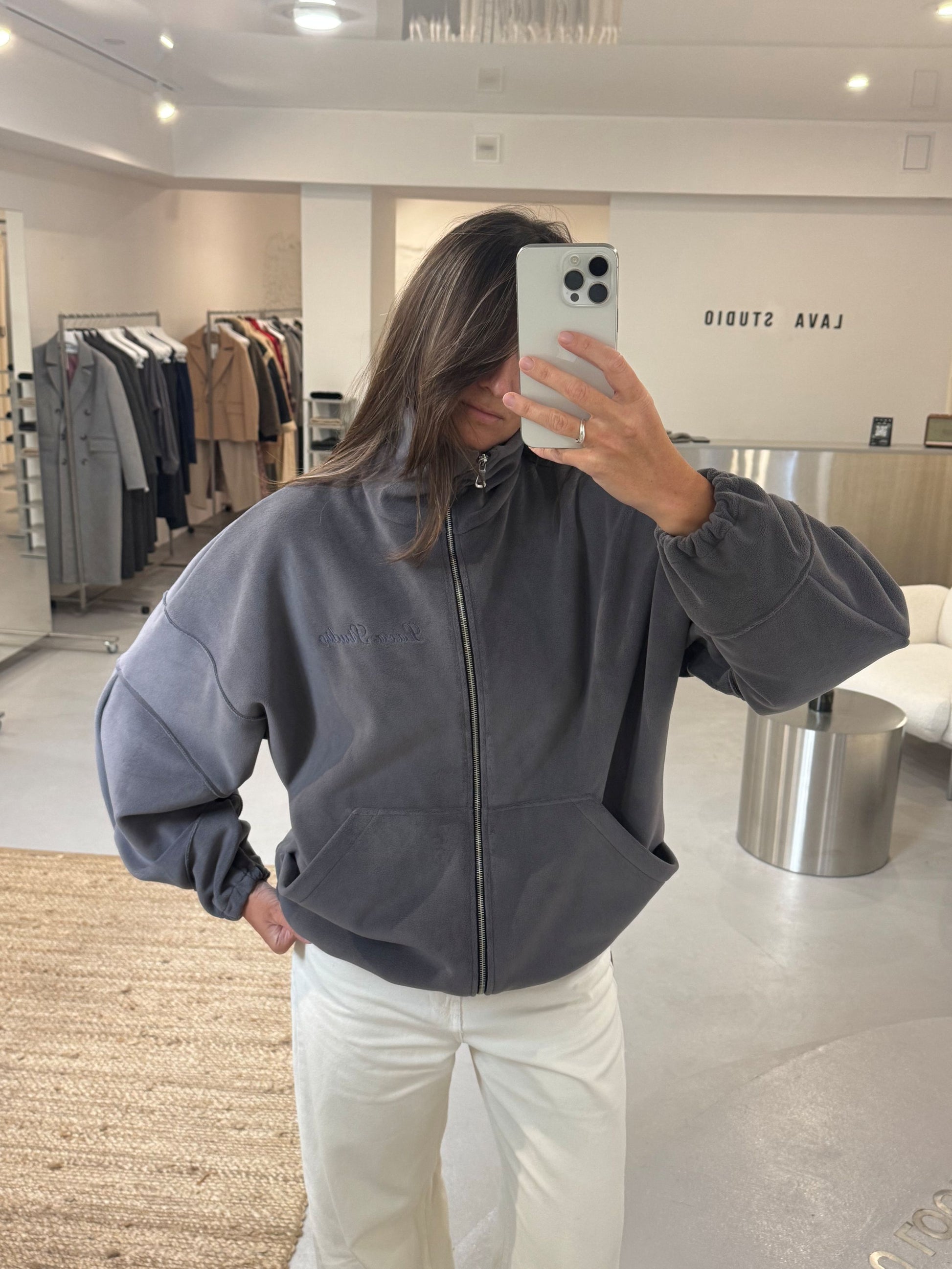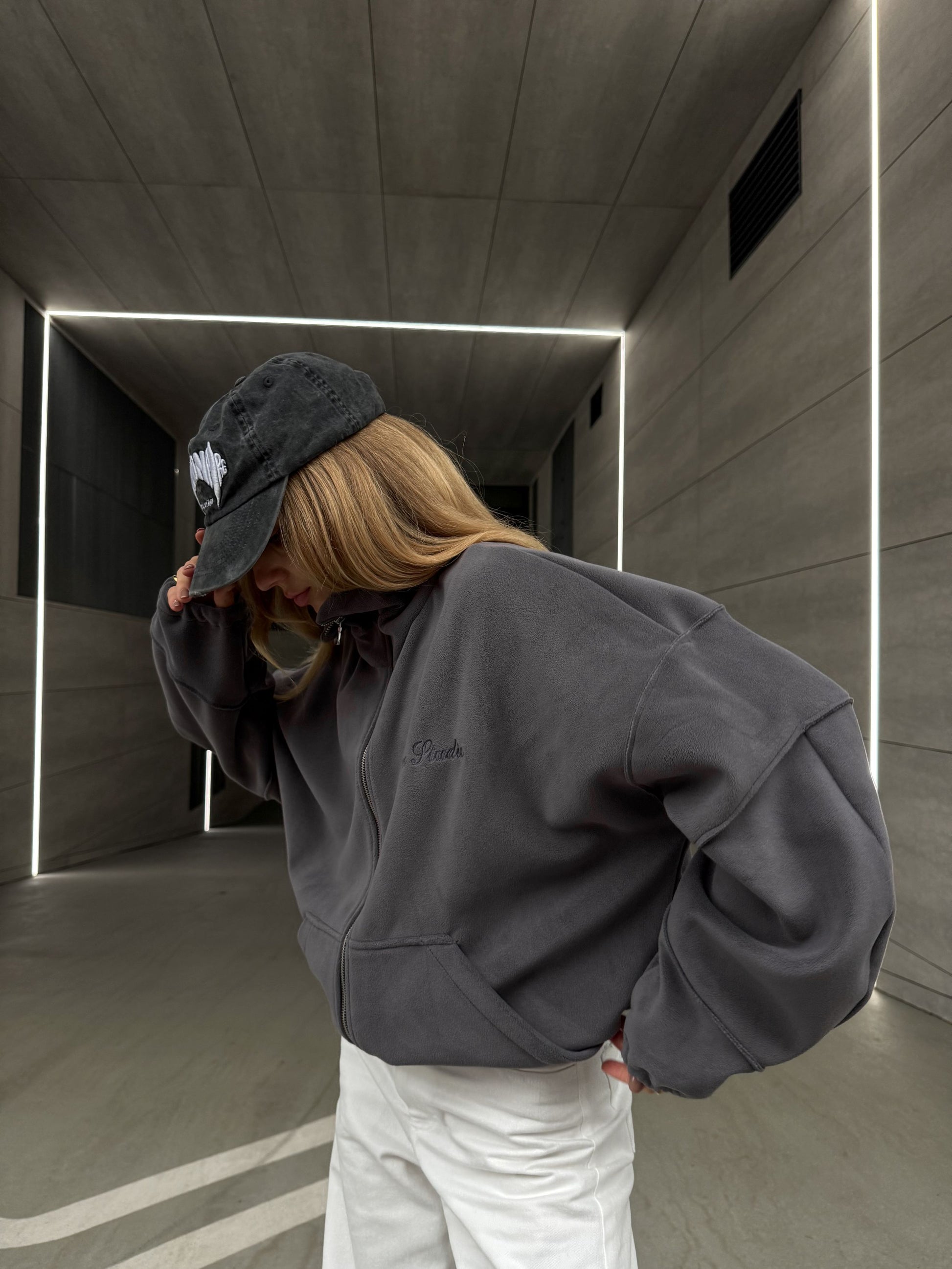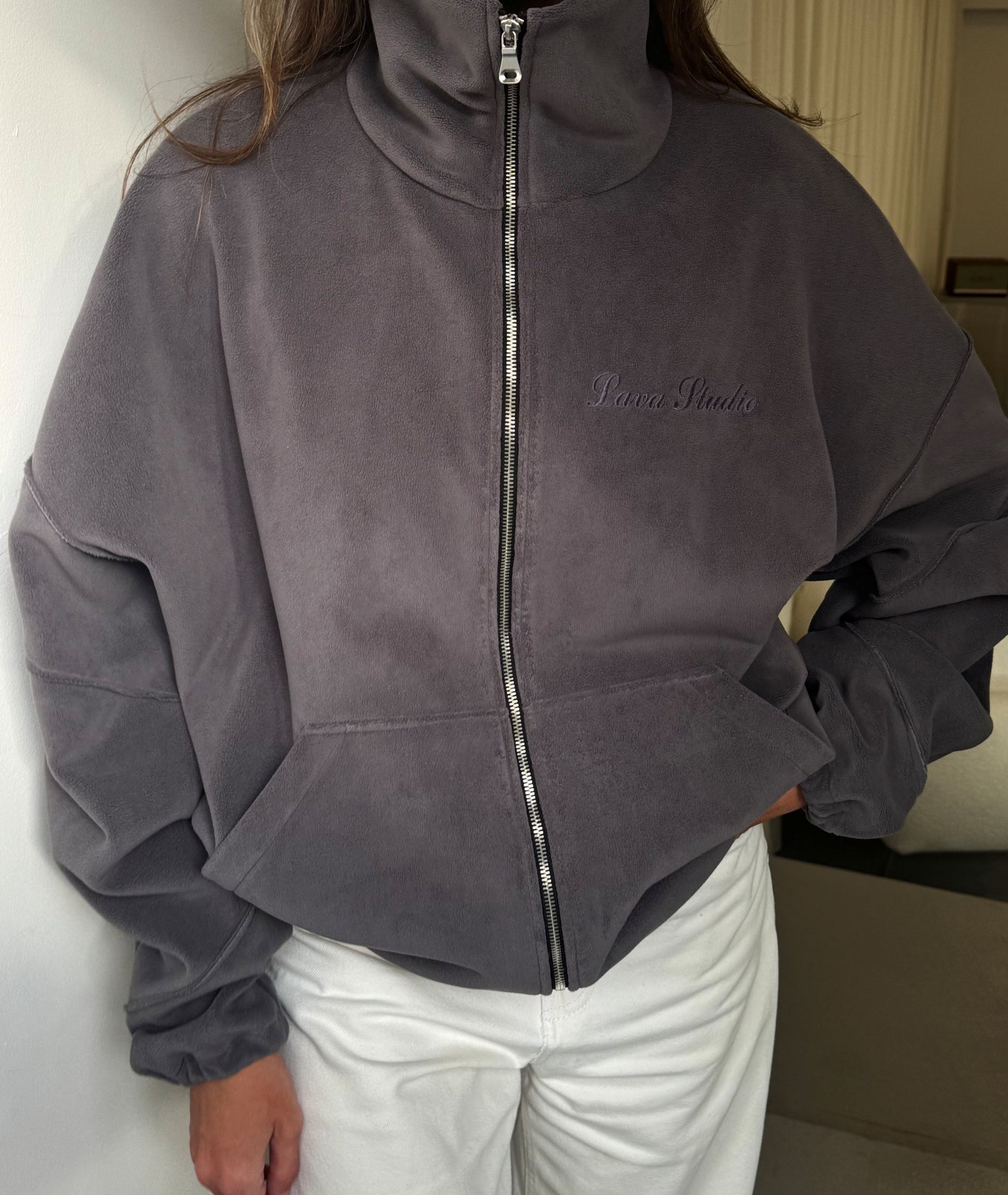 Дизайн фліски доповнений фірмовою вишивкою з лого бренду та декоративними накладними швами на рукавах, що додає виробу впізнаваного стилю