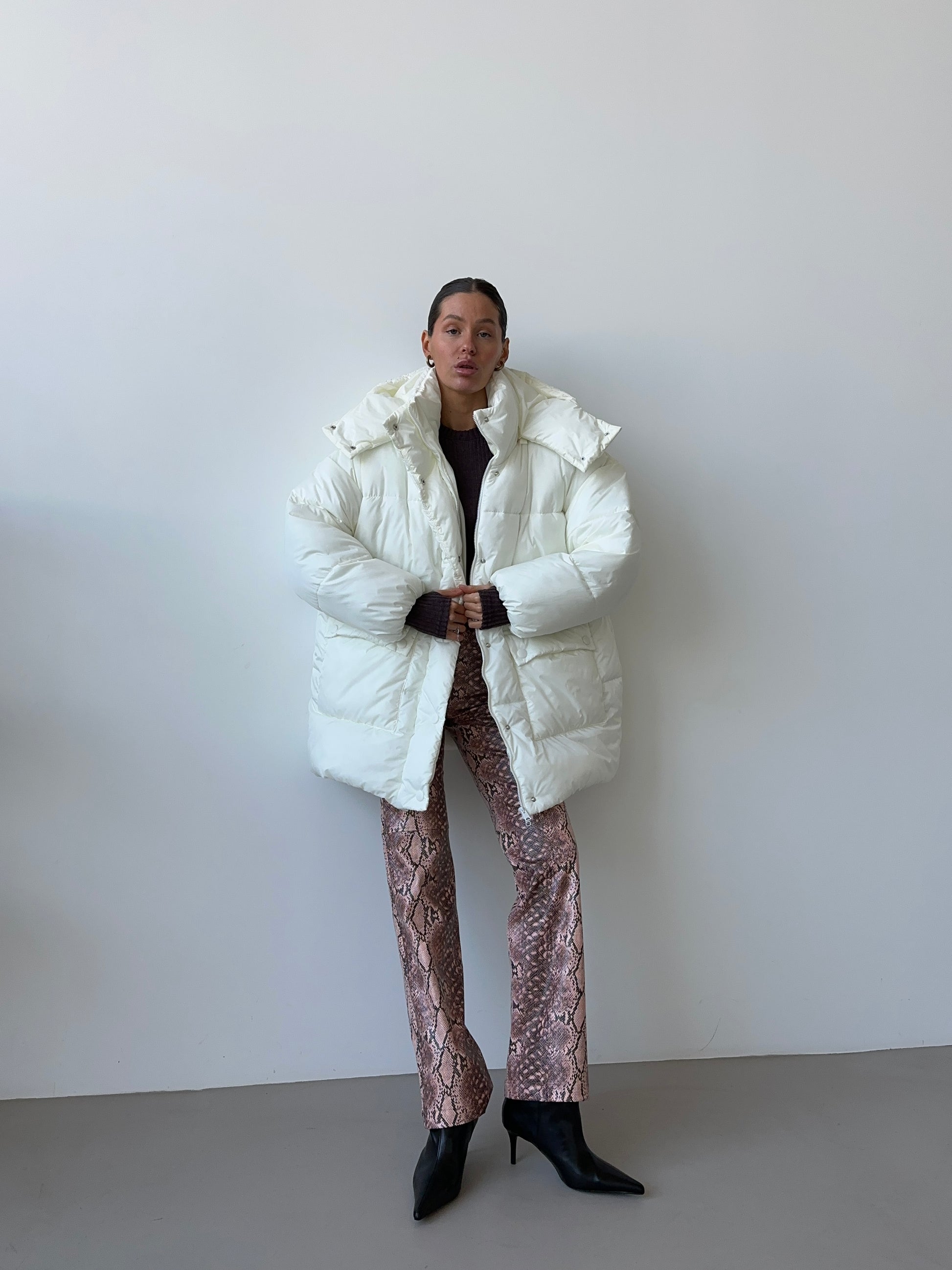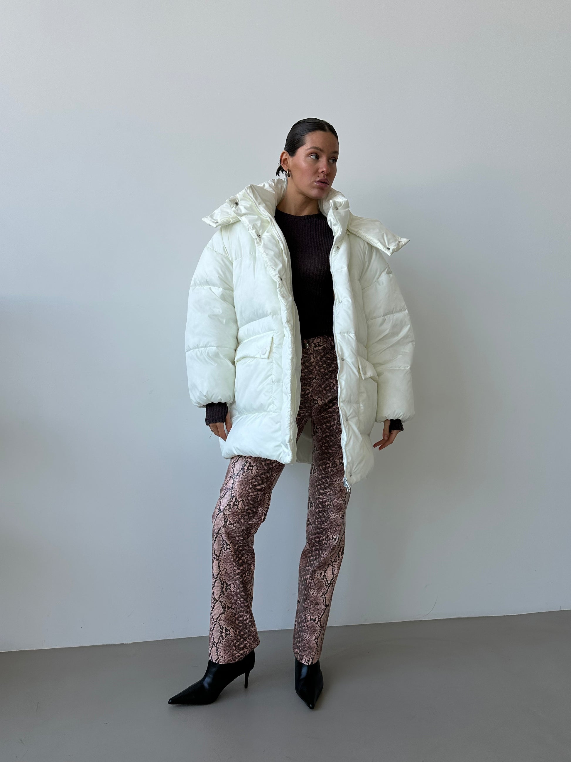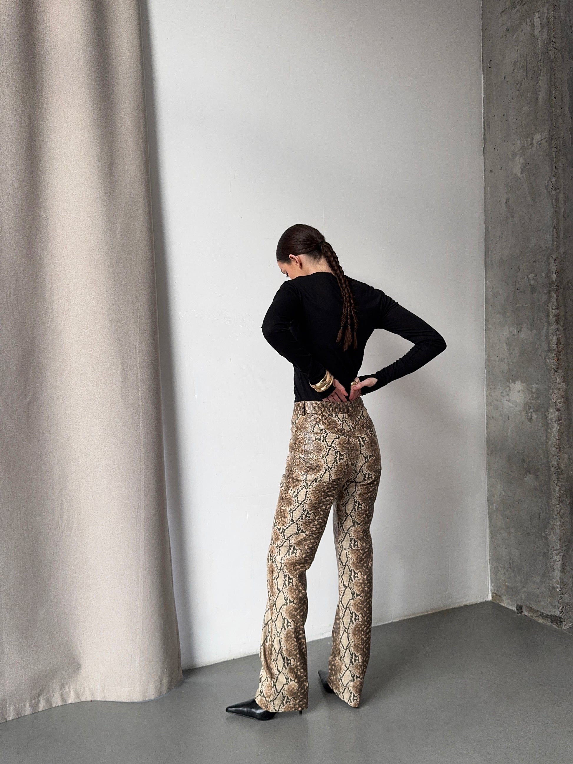 Штани зі зміїним принтом – стильний акцент для сучасного гардероба. Анімалістичний візерунок залишається в тренді, додаючи образу виразності та характеру. Лаконічний крій забезпечує комфортну посадку, а щільна тканина тримає форму. Ідеально поєднуються як з базовими речами, так і з яскравими акцентами.