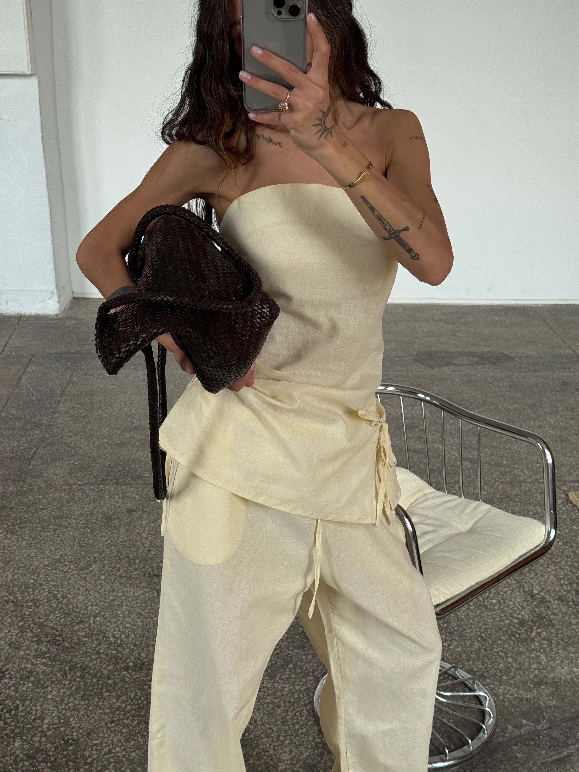 Прямі лляні штани — базовий елемент літнього гардероба. Натуральна тканина дарує комфорт у спеку, а лаконічний крій пасує до будь-якого стилю — від розслабленого до елегантного. Найкраще пасує з нашою сорочкою або топом на завʼязках, що створюю повноцінний лук.